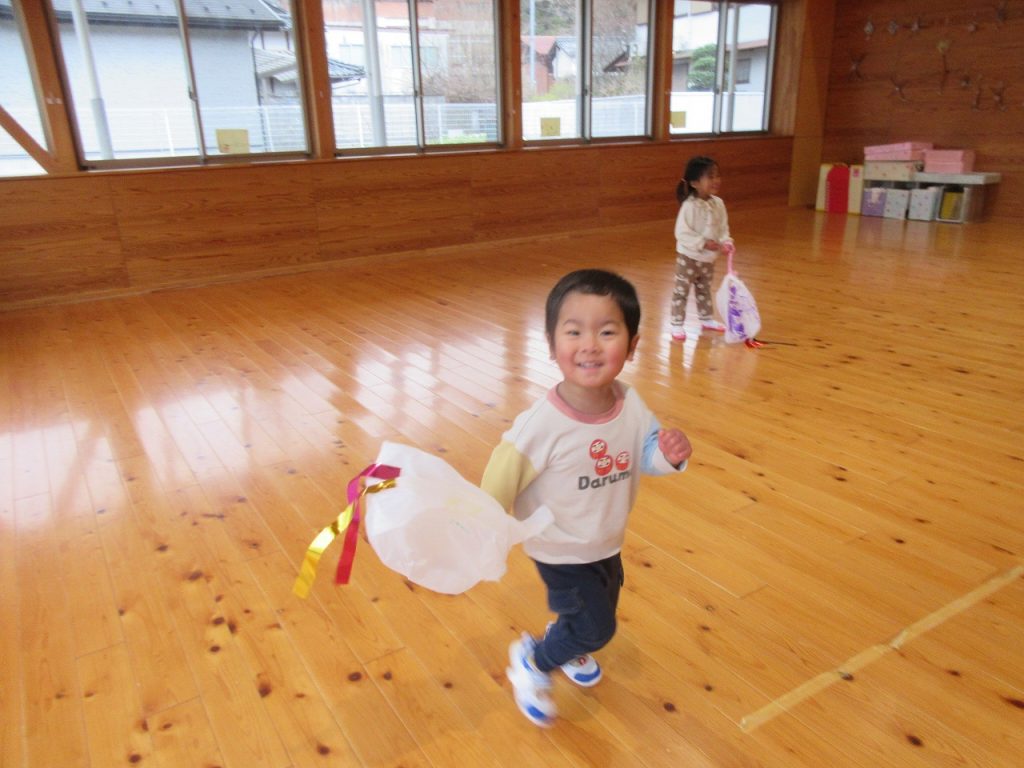 遊戯室で凧揚げをしました!