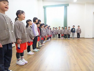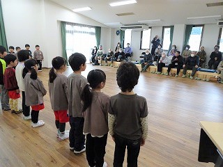 子ども達は自分達の発表を見てもらい、沢山の拍手や笑顔をもらってとても満足気でした。地域の方には、子ども達の姿を見てもらってこども園での子ども達の様子を知っていただく機会になりました。地域の方に見守られて今の子ども達がいます。今後も地域交流を沢山させていただきたいと思います。