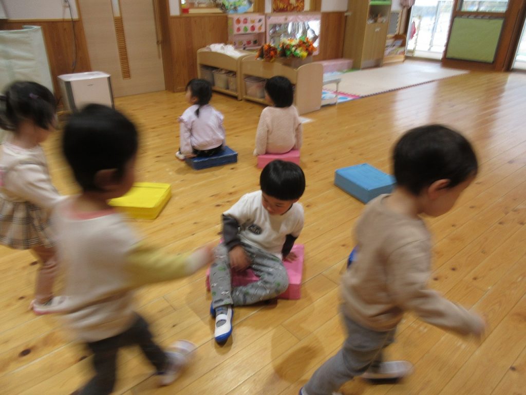 子どもたちだけでのイス取りゲームが流行っています(^^)/
