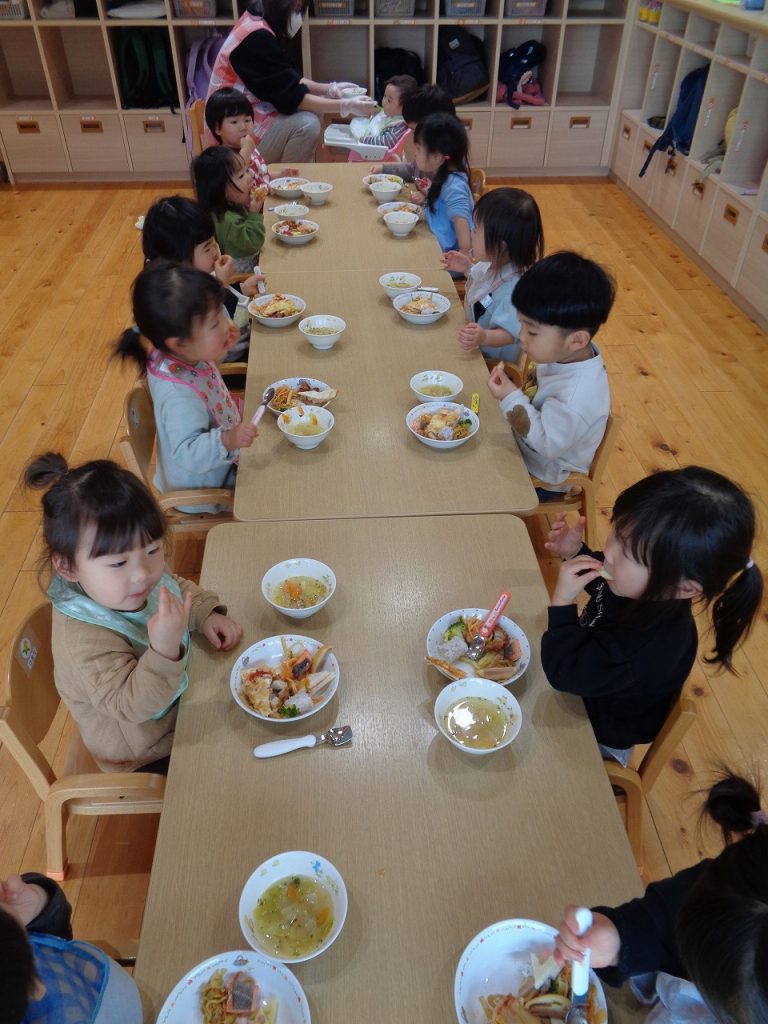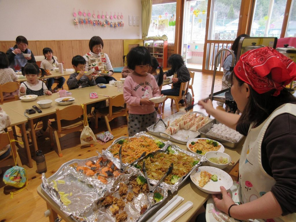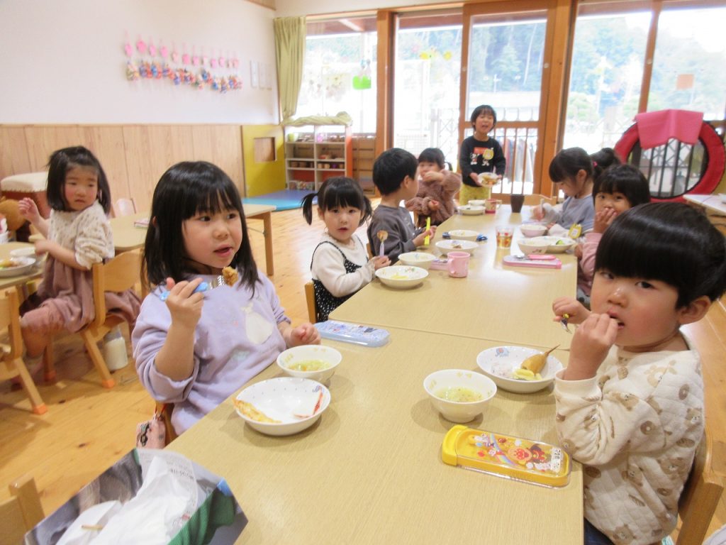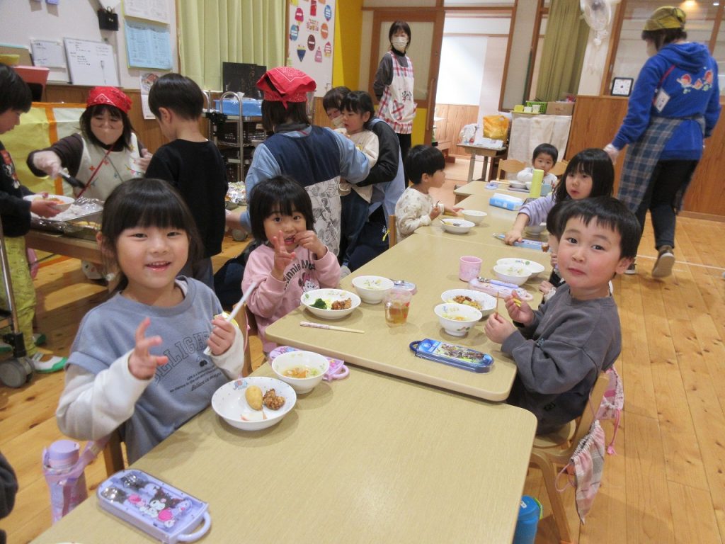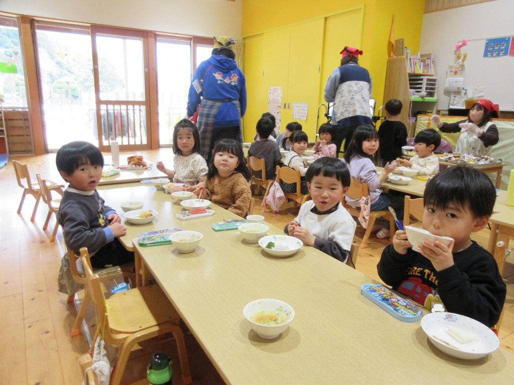 いつもおいしい給食を作ってくれる給食の先生も一緒に