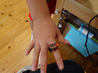 指に気を付けながら、石を割っていきます。割った断面が綺麗に光っていることや、筋がついていることに驚きや発見をみんなで味わっていました。