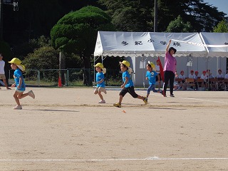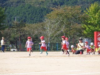 3~5歳児のかけっこは、学年によって距離が違います。「がんばるぞー!」の掛け声で力いっぱい走る姿に、沢山の声援をいただきました。