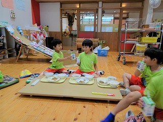 みんなでお疲れパーティーしようという子ども達。給食の牛乳でみんなでカンパイをしました。「もう酔っぱらうわ~」と牛乳を飲んで言いながら、お疲れパーティーを楽しみました。