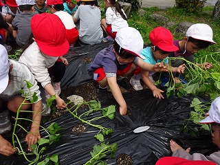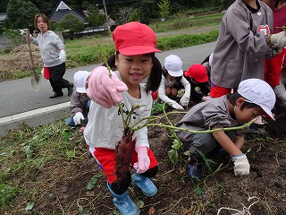 10月22日には、芋ほりをしました。1学期にみんなで植えたサツマイモの苗が成長し、ぐーーんとツルが伸びていることにとても驚いた様子!