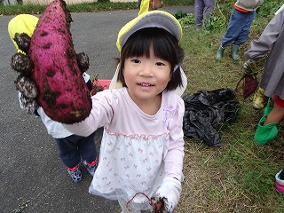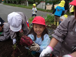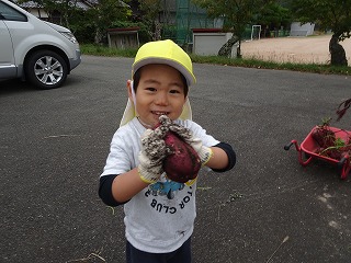 土の中のサツマイモを一生懸命掘り起こし、収穫出来た際は満面の笑みでした♡