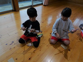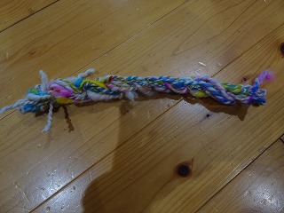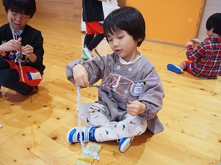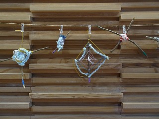 実演を見せていただいた後は、木の枝に毛糸を巻き付けて工作をしました。最初は難しがっていた子も慣れてくると要領が分かってきて、素敵な毛糸の作品が完成しました♡