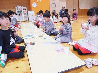 毛糸が出来るまでに沢山の工程があったことを知った子ども達。普段何気なく使っているものが、こんなにも手間がかかっていることに驚いていました。