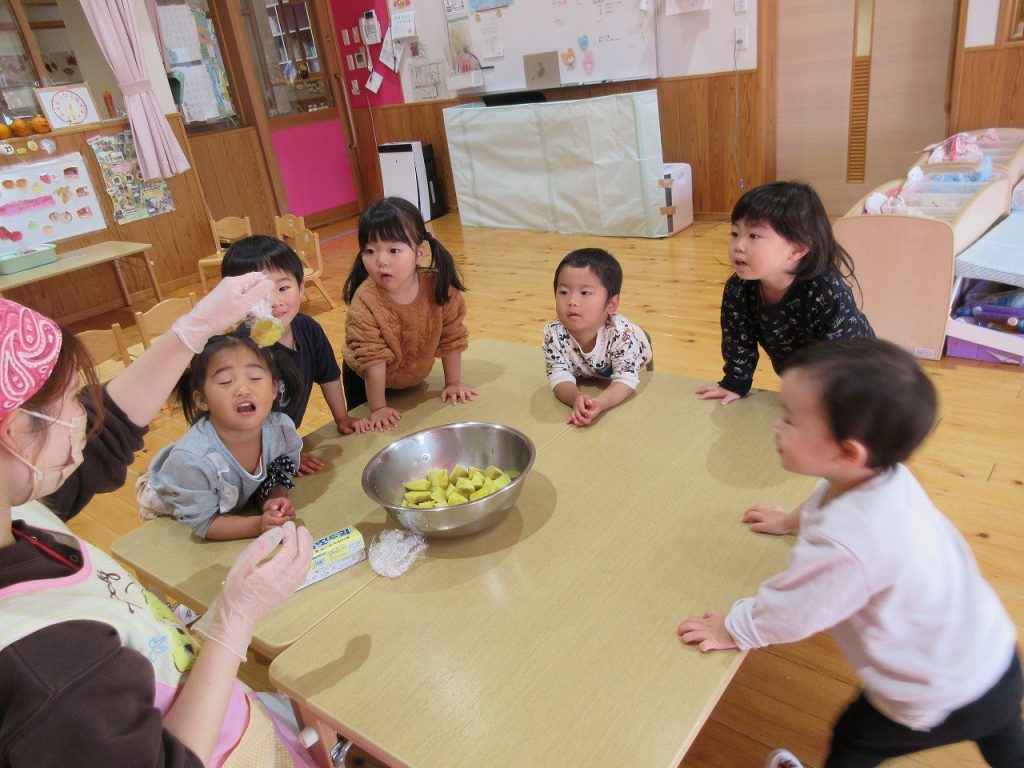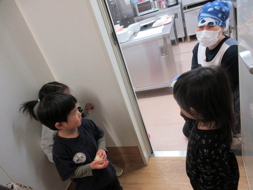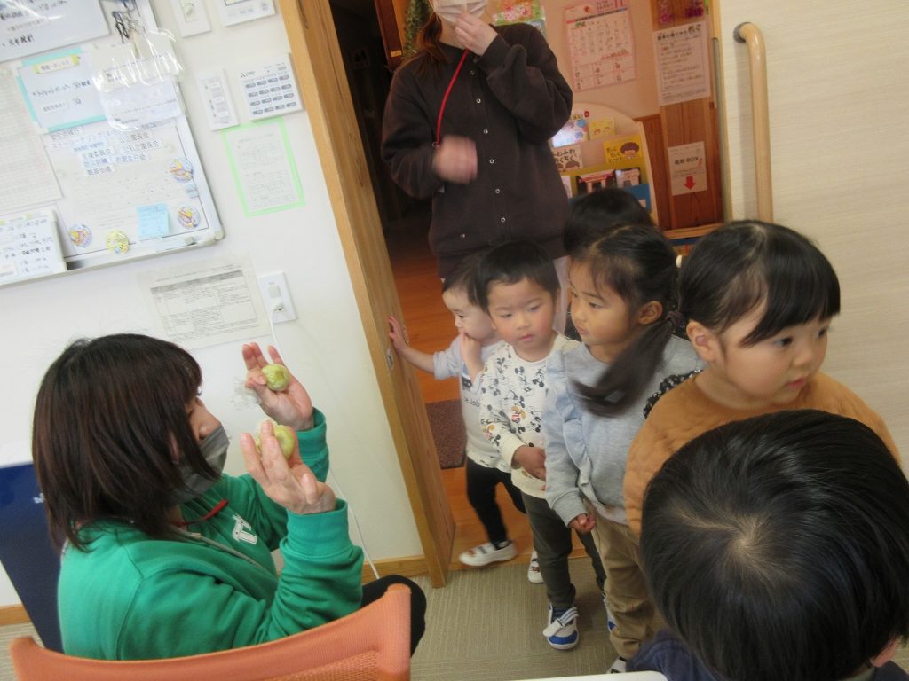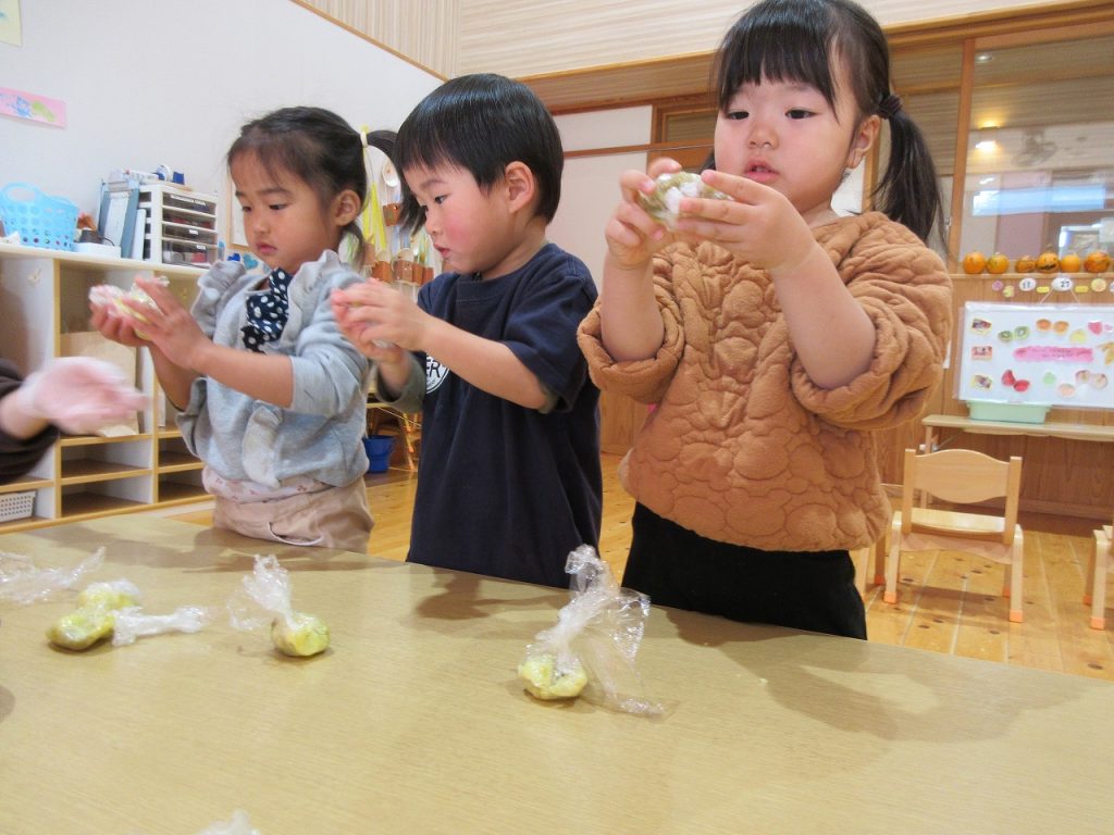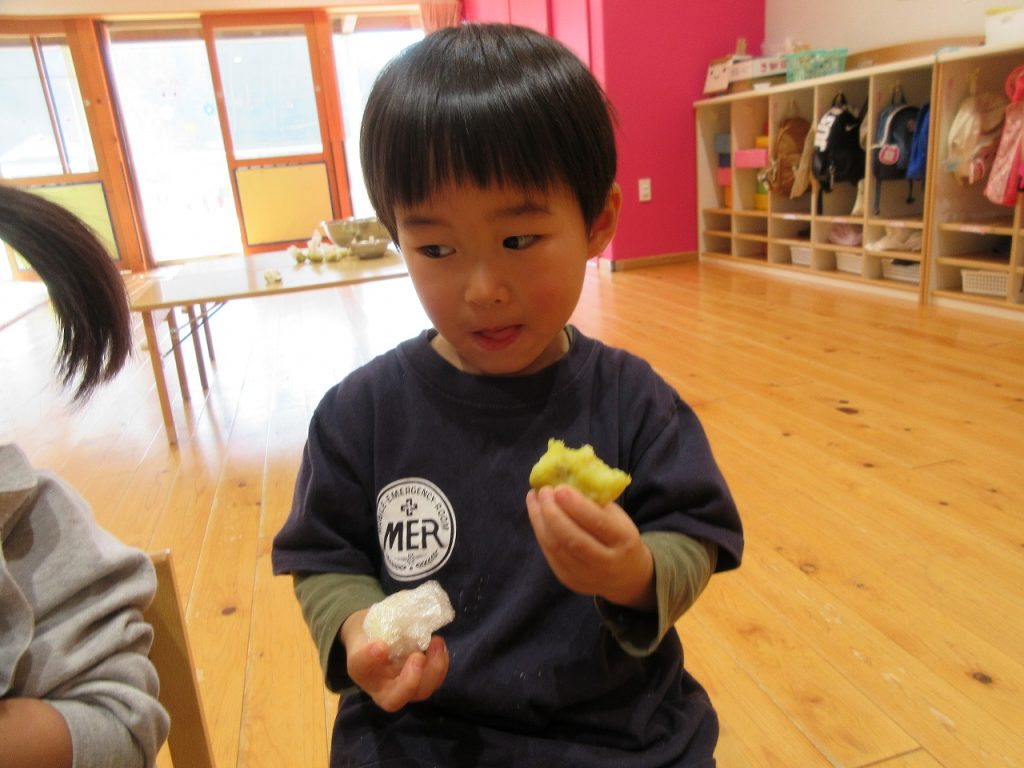 “皮をむいたイモは何色かなぁ?”と尋ねると