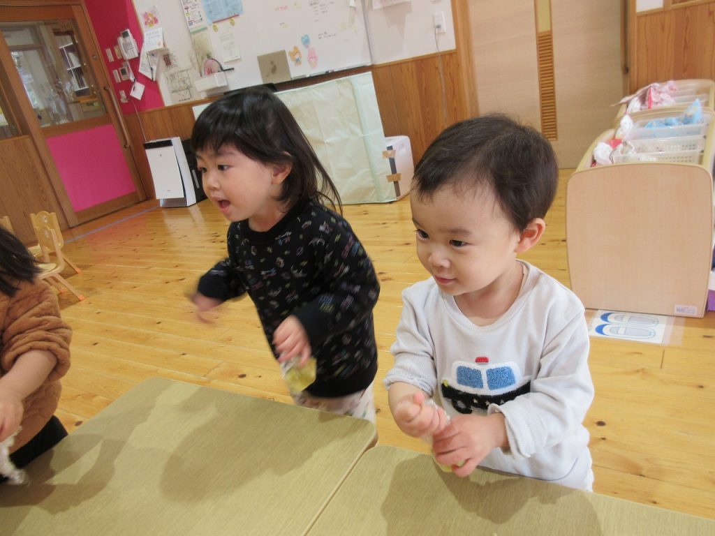 “ぎゅっ、ぎゅっ” とやわらかくします。