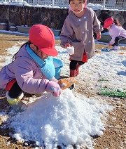 1月22日(木)は沢山雪が積もりましたね。朝から子ども達は沢山の雪にワクワクしている様子で、早速朝から園庭で雪遊びをしました♫寒いのも忘れてどのクラスも存分に遊んでいましたよ。まるいのふわっふわの雪だったね!翌日の23日(金)は、雪が溶けて...
